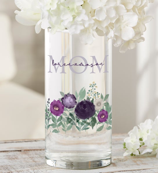2. Floral Love For Mom Personalized Cylinder Glass Flower Vase
